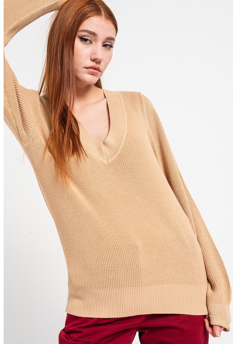 Caracteristici Tip produs: pulover Culoare: maro nisip Imprimeu: uni Material: sintetic - viscoza Model: in v Croiala: lejer Sistem inchidere: fara inchidere Lungime maneca: maneca lunga Compozitie Exterior: 68% viscoza - 32% poliester Info model Modelul poarta un produs de marimea S. Marimi model: 180 cm inaltime - 84 cm bust - 67 cm talie - 92 cm sold