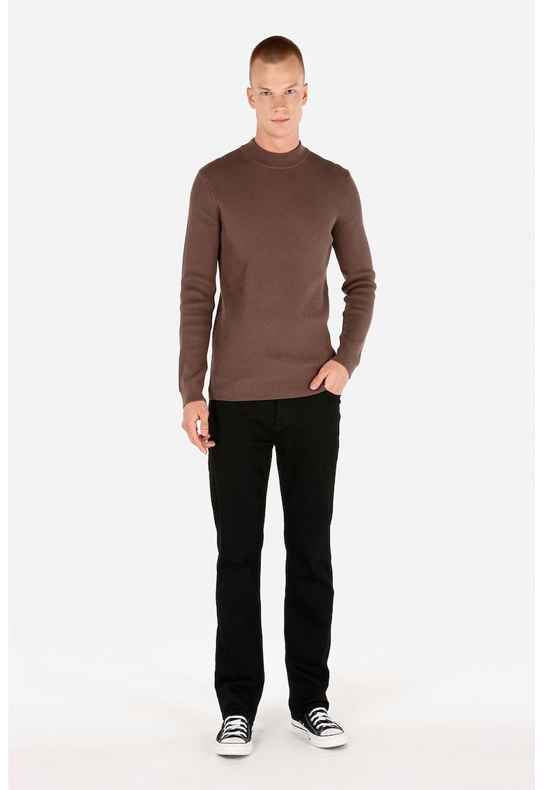 pulover regular fit din amestec de bumbac cu decolteu la baza gatului