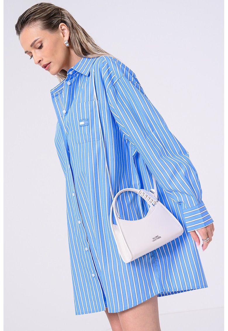 Caracteristici Culoare: alb - negru - albastru lavanda Stil: casual Material: bumbac - bumbac organic Imprimeu: dungi Croiala: lejer Lungime: scurta Guler: clasic Lungime maneca: maneca lunga Compozitie Exterior: 50% bumbac organic - 50% bumbac Info model Modelul poarta un produs de marimea S. Marimi model: 174 cm inaltime - 84 cm bust - 64 cm talie - 90 cm sold