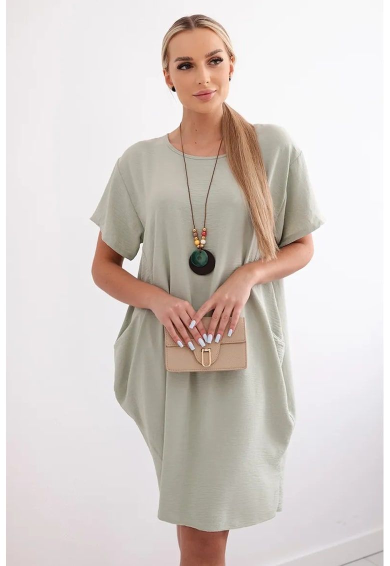 Caracteristici Culoare: verde Material: poliester Imprimeu: uni Croiala: evazat Lungime: midi Decolteu: rotund Maneci: scurte Lungime maneca: maneca scurta Talie: regular Buzunare: 2 Sistem inchidere: fara inchidere
