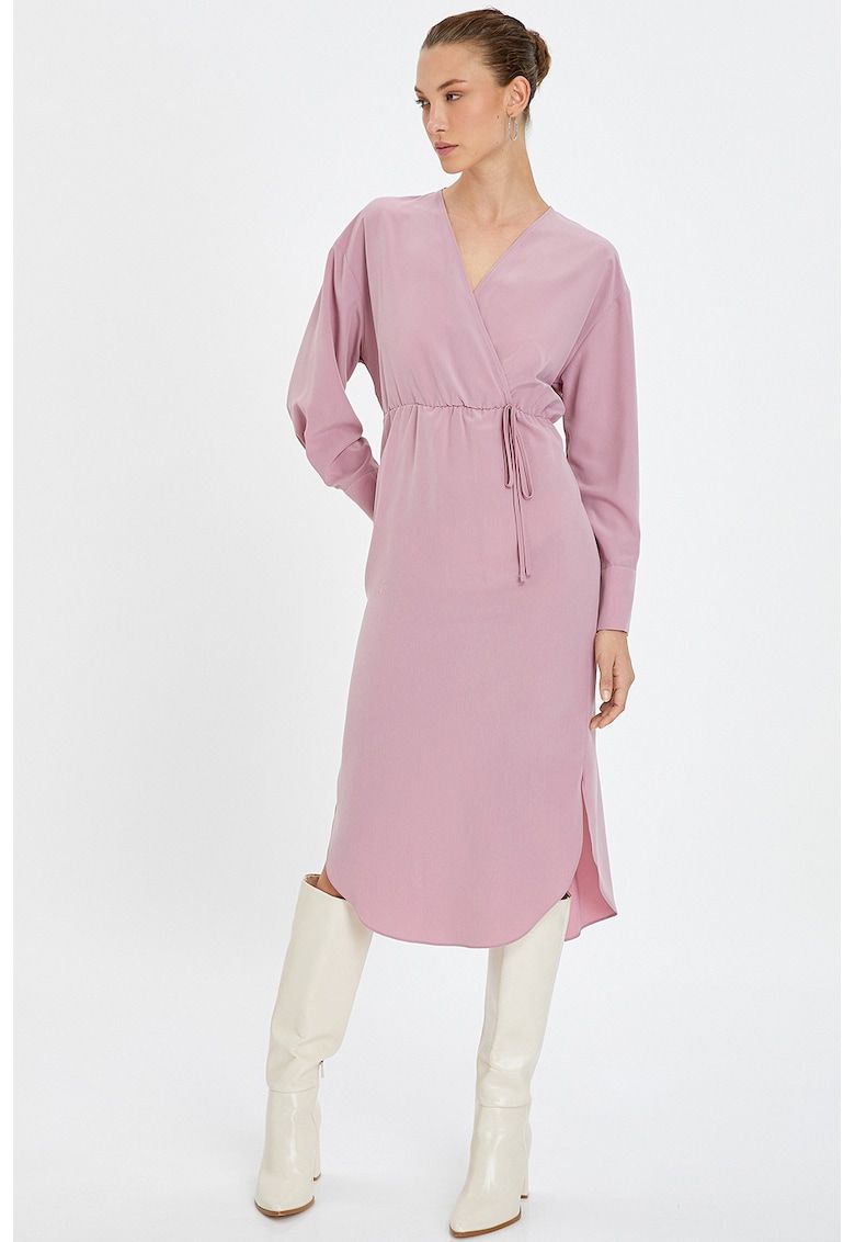Caracteristici Culoare: liliac prafuit Stil: casual Material: poliester Imprimeu: uni Croiala: petrecuta Lungime: midi Decolteu: in v Lungime maneca: maneca lunga Compozitie Exterior: 100% poliester