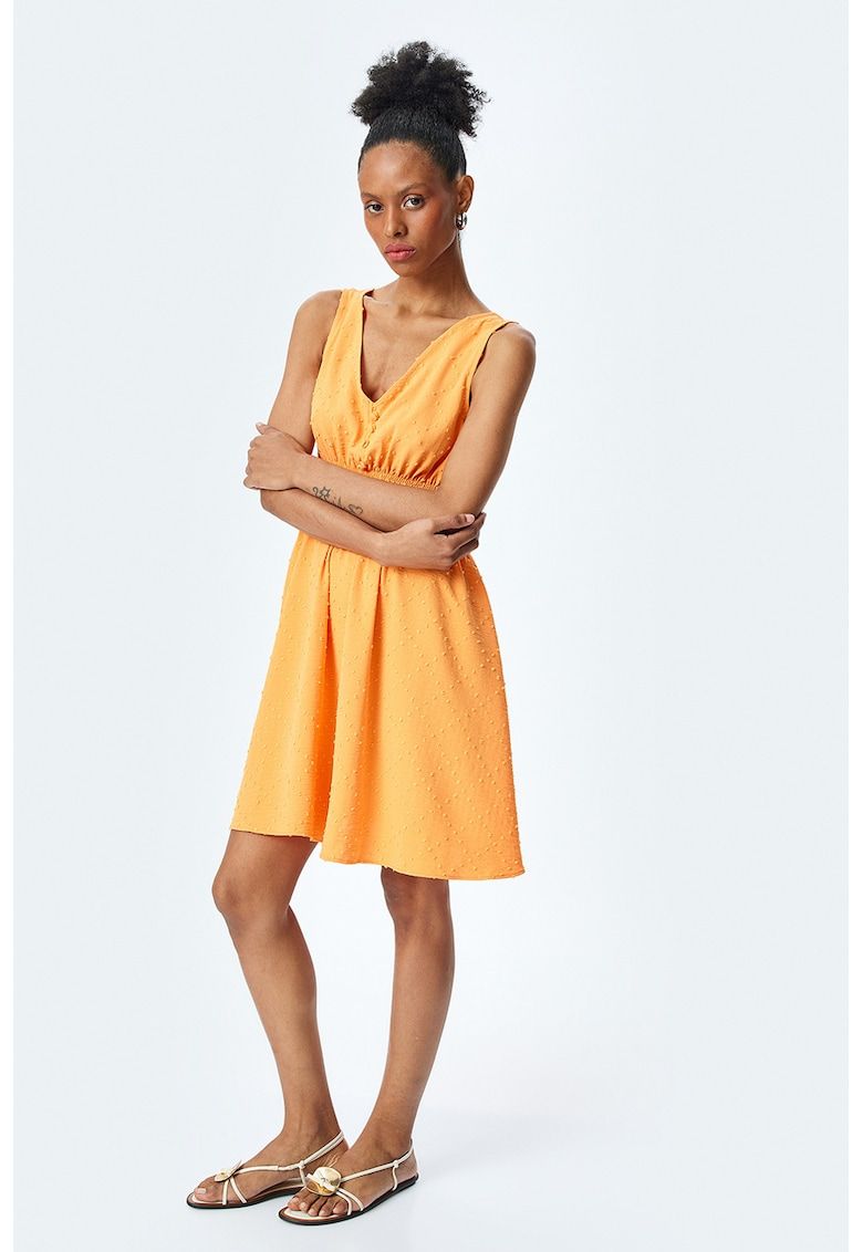 Caracteristici Culoare: galben sofran Stil: casual Material: poliester Imprimeu: uni Croiala: in a Lungime: scurta Lungime maneca: fara maneca Compozitie Exterior: 100% poliester