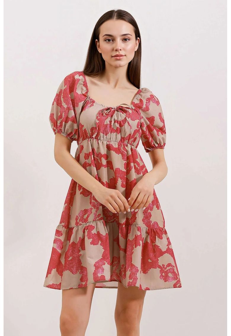 rochie mini dama - forma a - decolteu patrat - bumbac/poliester - roz/bej