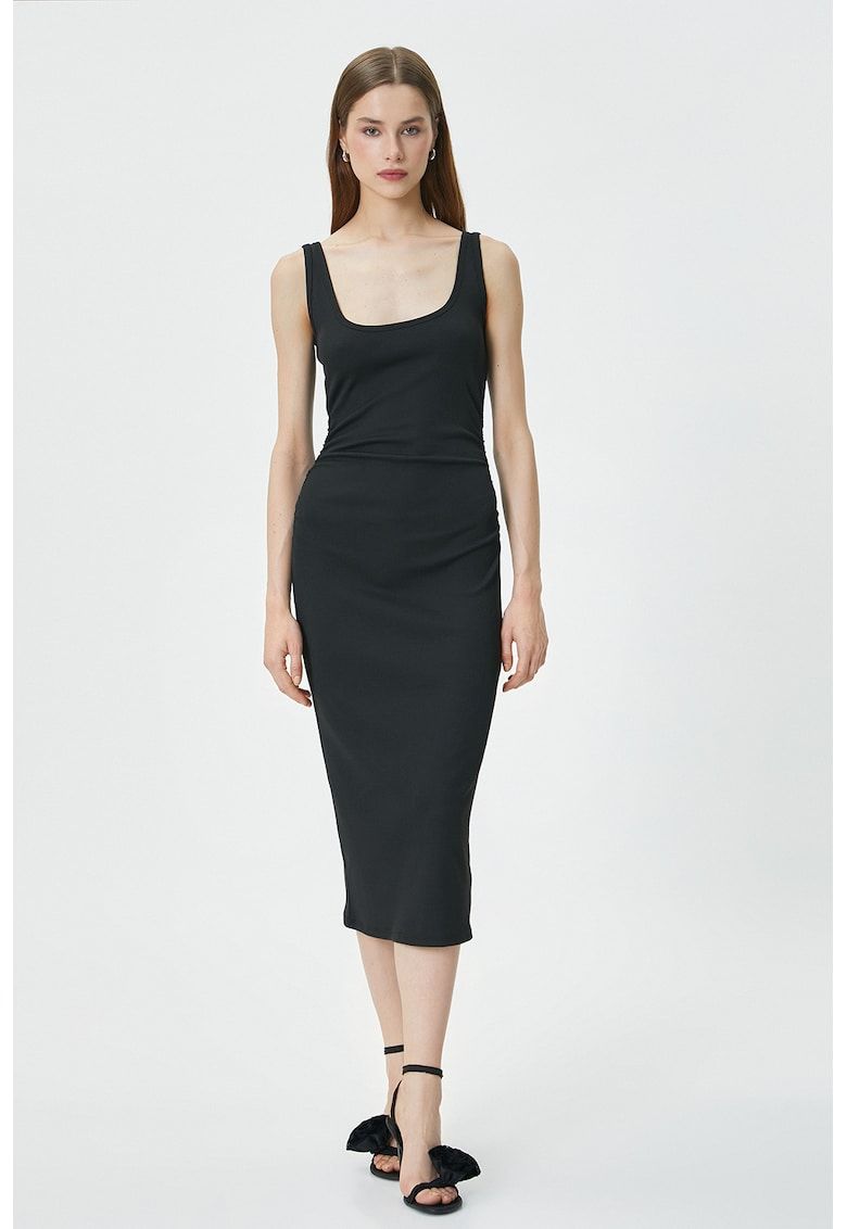 Caracteristici Culoare: negru Stil: casual Material: poliester Imprimeu: uni Croiala: cambrata Lungime: midi Decolteu: patrat Lungime maneca: fara maneca Compozitie Exterior: 95% poliester - 5% elastan