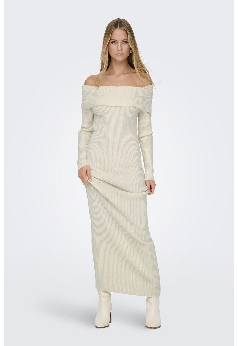 Caracteristici Culoare: crem Stil: elegant Material: poliester - viscoza - nylon Imprimeu: uni Croiala: decolteu pe umeri Lungime: lunga Lungime maneca: maneca lunga Sistem inchidere: fara inchidere Compozitie Exterior: 50% viscoza - 27% nailon - 23% poliester