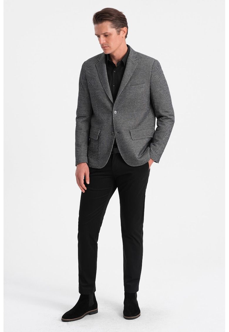 Caracteristici Culoare: gri inchis melange Imprimeu: uni Material: sintetic - bumbac Stil: casual Croiala: regular fit Guler: cu revere decupate Lungime maneca: maneca lunga Buzunare: 2 cu clapa - unul - pe piept Sistem inchidere: nasturi Compozitie Exterior: 65% poliester - 35% bumbac