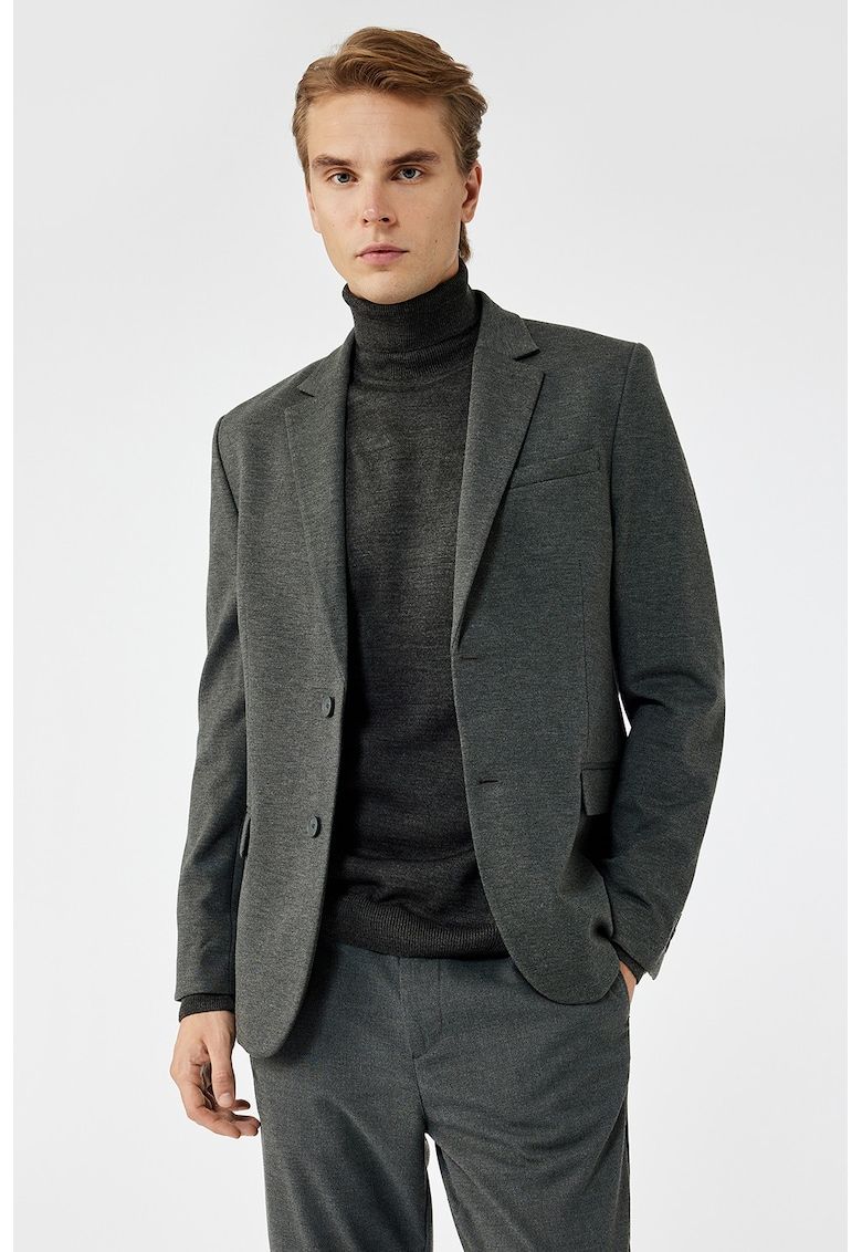 Caracteristici Culoare: gri antracit Imprimeu: uni Material: poliester - viscoza Stil: casual Croiala: regular fit Guler: cu revere Lungime maneca: maneca lunga Sistem inchidere: nasturi Compozitie Exterior: 72% poliester - 26% viscoza - 2% elastan