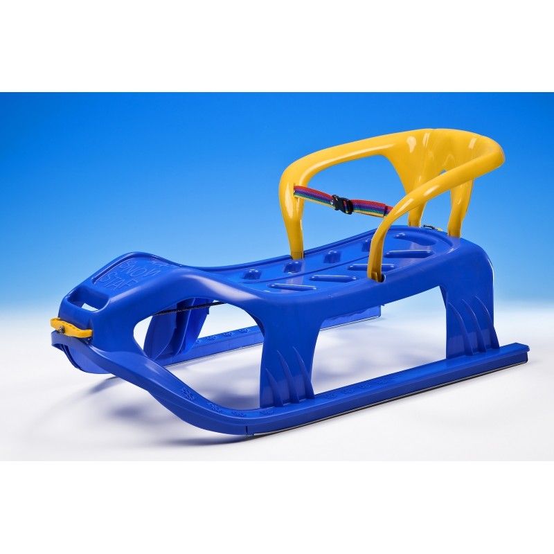 Sanie cu spatar pentru copii, Marmat Snow Star, albastru, 90 x 46 x 45 cm.Produsulnbspeste realizata integral din plastic rezistent albastru sinbspde calitate.Saniuta este mare, dar in acelasi timp si