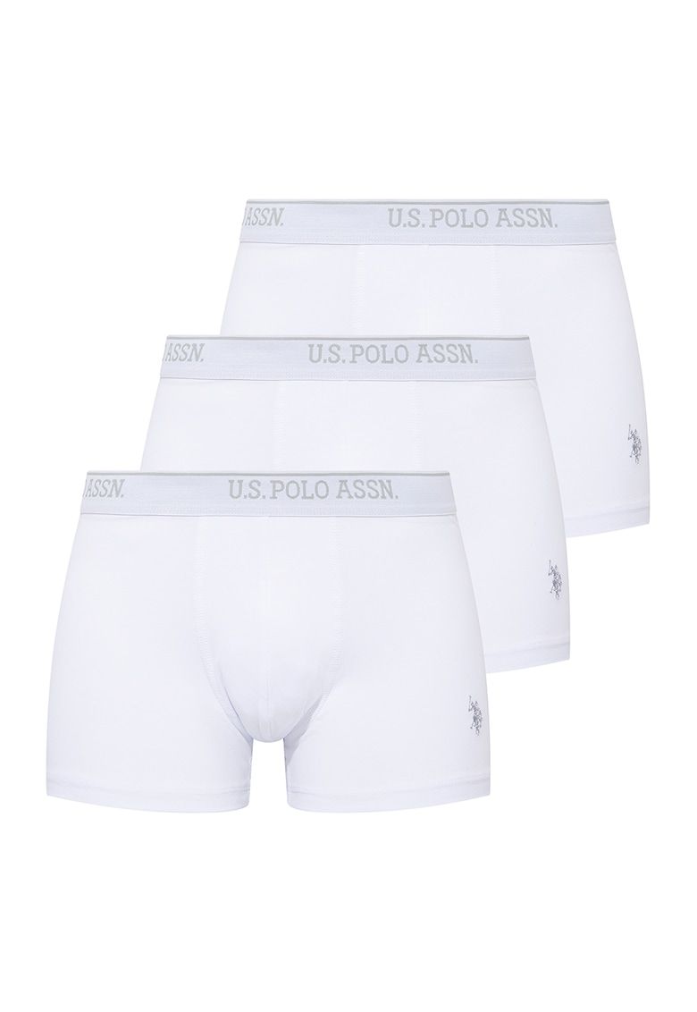 Caracteristici Tip produs: set boxeri Continut pachet: 3 perechi de boxeri Culoare: alb Numar bucati/set: 3 Imprimeu: uni Material: bumbac - fibre sintetice Talie: regular Detalii: banda elastica - cu logo - in talie - broderie logo Compozitie Exterior: 95% bumbac - 5% elastan
