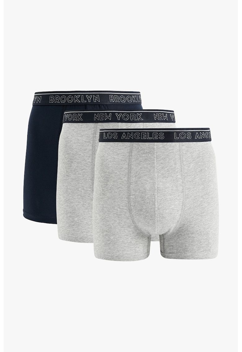 Caracteristici Tip produs: set boxeri Continut pachet: 3 perechi de boxeri Culoare: negru - gri deschis Numar bucati/set: 3 Imprimeu: uni Material: bumbac Talie: banda elastica Compozitie Exterior: 95% bumbac - 5% elastan