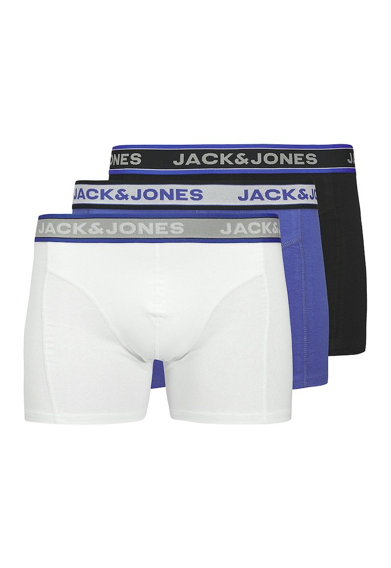 Caracteristici Tip produs: set boxeri Culoare: alb - negru - albastru deschis Numar bucati/set: 3 Imprimeu: uni Material: elastan - bumbac organic Talie: banda cu logo in talie Compozitie Exterior: 95% bumbac organic - 5% elastan