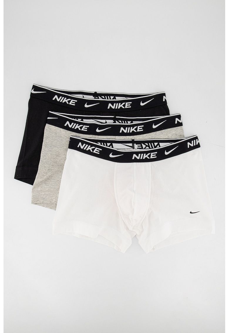 Caracteristici Tip produs: set boxeri Continut pachet: 3 perechi Culoare: alb - negru - gri Numar bucati/set: 3 Imprimeu: logo Material: bumbac Talie: medie Detalii: talie elastica Compozitie Exterior: 95% bumbac - 5% elastan Info model Modelul poarta un produs de marimea M. Marimi model: 191 cm inaltime - 99 cm bust - 80 cm talie - 101 cm sold