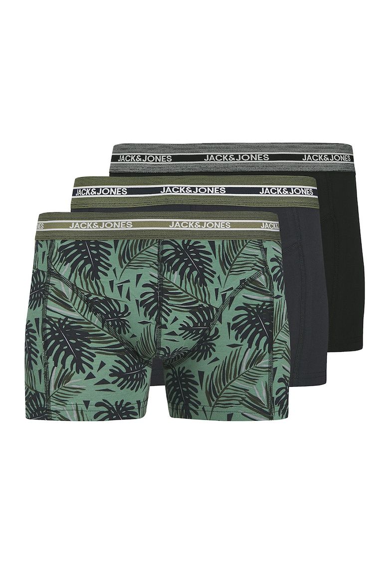 Caracteristici Tip produs: boxeri Continut pachet: 3 perechi de boxeri Culoare: verde - negru - gri Numar bucati/set: 3 Imprimeu: tropical Material: bumbac Talie: elastica Compozitie Exterior: 95% bumbac - 5% elastan