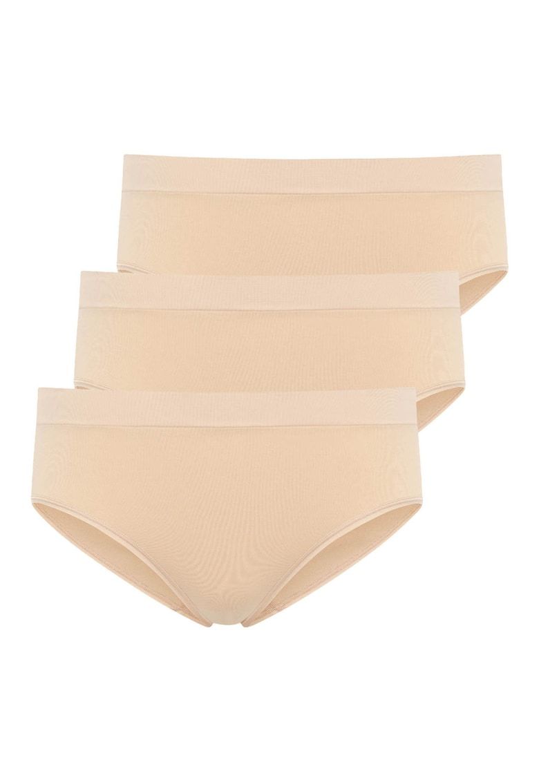 Caracteristici Tip produs: chiloti Culoare: bej Imprimeu: uni Material: sintetic Numar bucati/set: 3 Talie: medie Compozitie Exterior: poliamida - elastan