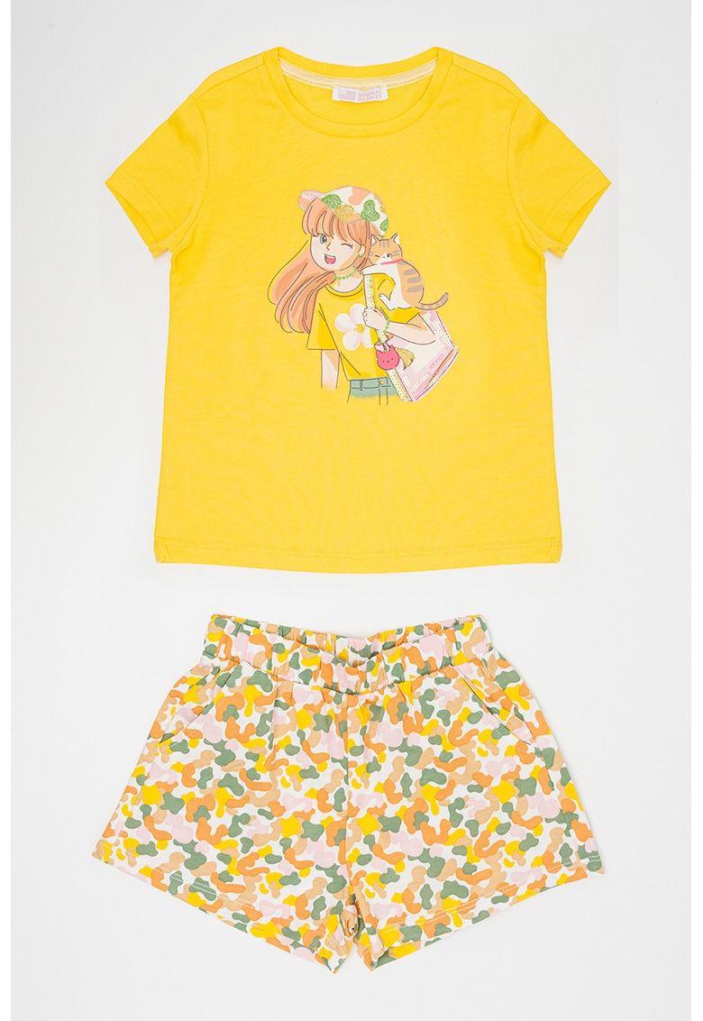 Caracteristici Continut pachet: un tricou si o pereche de pantaloni scurti Culoare: galben pai - portocaliu deschis - verde feriga Stil: casual Imprimeu: grafic Croiala: regular fit Material: bumbac Decolteu: la baza gatului Lungime maneca: maneca scurta Lungime pantaloni: scurti Colectie: primavara - vara - toamna - iarna Compozitie Exterior: 100% bumbac