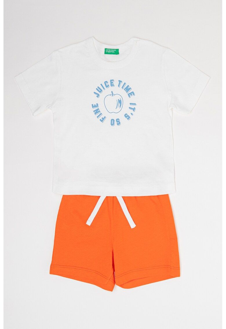 Caracteristici Continut pachet: un tricou si o pereche de pantaloni scurti Culoare: alb - portocaliu mandarina Stil: casual Imprimeu: uni - text Croiala: regular fit Material: bumbac Decolteu: la baza gatului Lungime maneca: maneca scurta Lungime pantaloni: scurti Detalii: talie ajustabila - cu snur Colectie: primavara - vara - toamna - iarna Compozitie Exterior: 100% bumbac