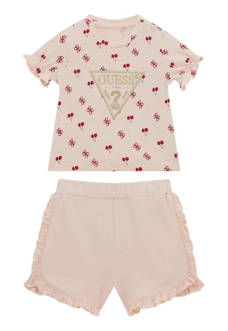 set de pantaloni scurti cu detaliu cu volane si tricou din amestec de bumbac - 2 piese