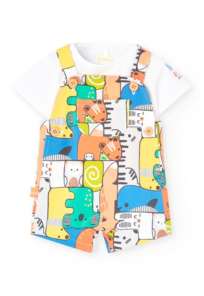 set de salopeta cu imprimeu grafic si tricou uni