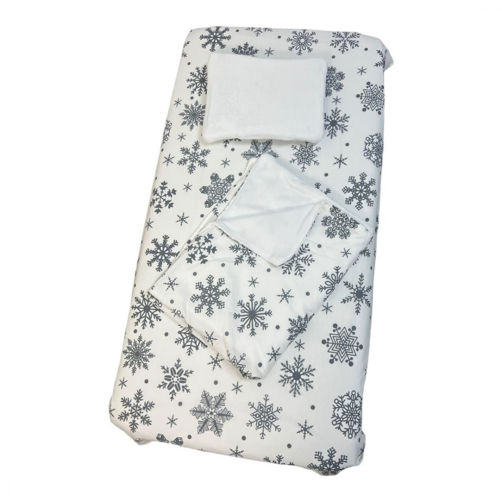 set lenjerie deseda pentru pat copii 3 piese pentru sarbatori fulgi de nea fond alb 140x70 cm