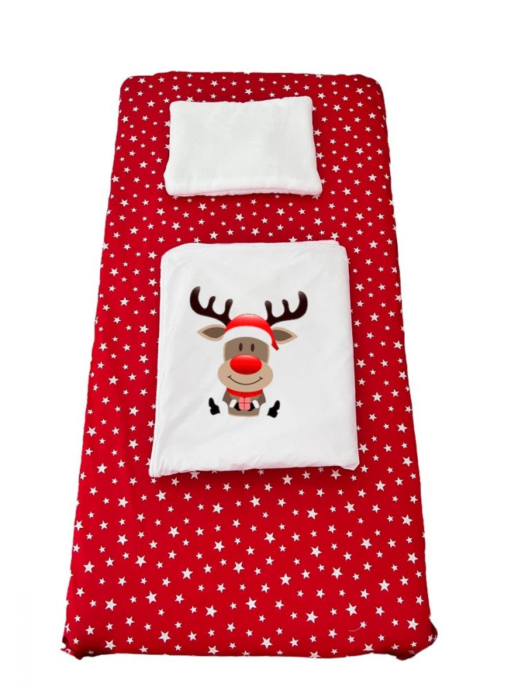 set lenjerie deseda pentru pat copii 3 piese pentru sarbatori renul rudolf 160x80 cm
