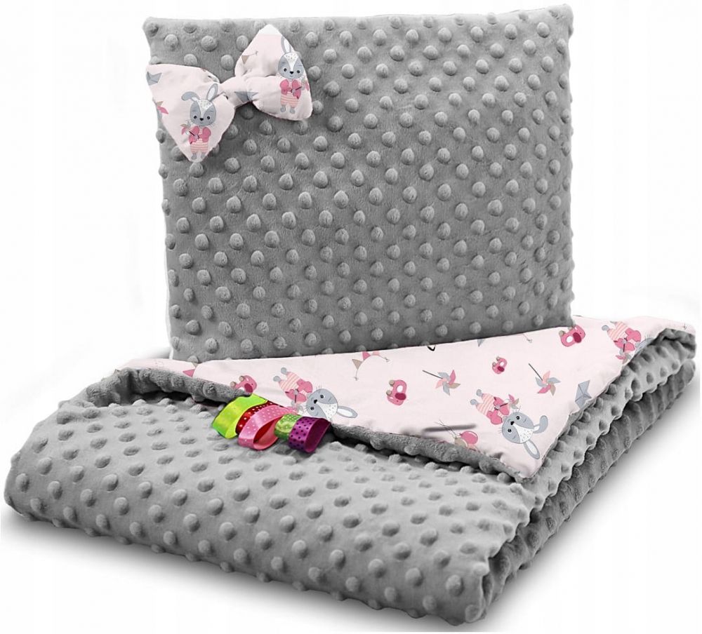 set paturica 75x100 cm si perna 35x30 cm minky grey and pink balloons