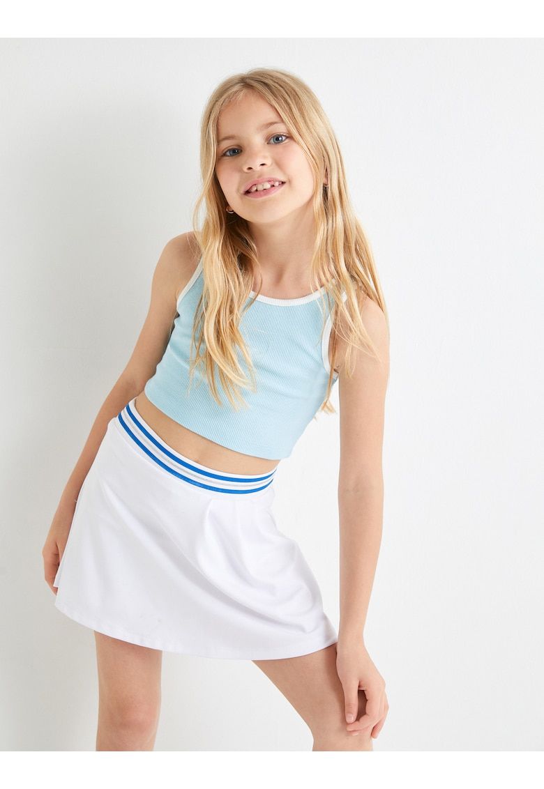 Caracteristici Culoare: albastru Material: bumbac - elastan Imprimeu: uni Croiala: regular fit Decolteu: rotund Lungime maneca: fara maneca Compozitie Exterior: bumbac - elastan