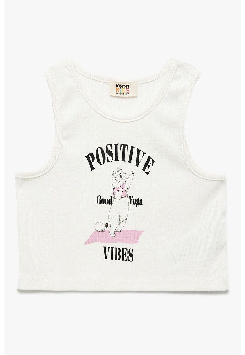 Caracteristici Culoare: alb Material: bumbac - elastan Imprimeu: text - grafic Croiala: crop Decolteu: rotund Lungime maneca: fara maneca Compozitie Exterior: 92% bumbac - 8% elastan
