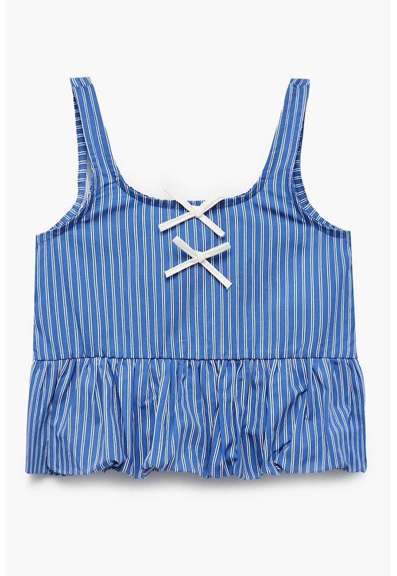 Caracteristici Culoare: albastru royal - alb optic Stil: casual Imprimeu: dungi Material: bumbac Croiala: regular fit Decolteu: patrat Lungime maneca: fara maneca Compozitie Exterior: 100% bumbac