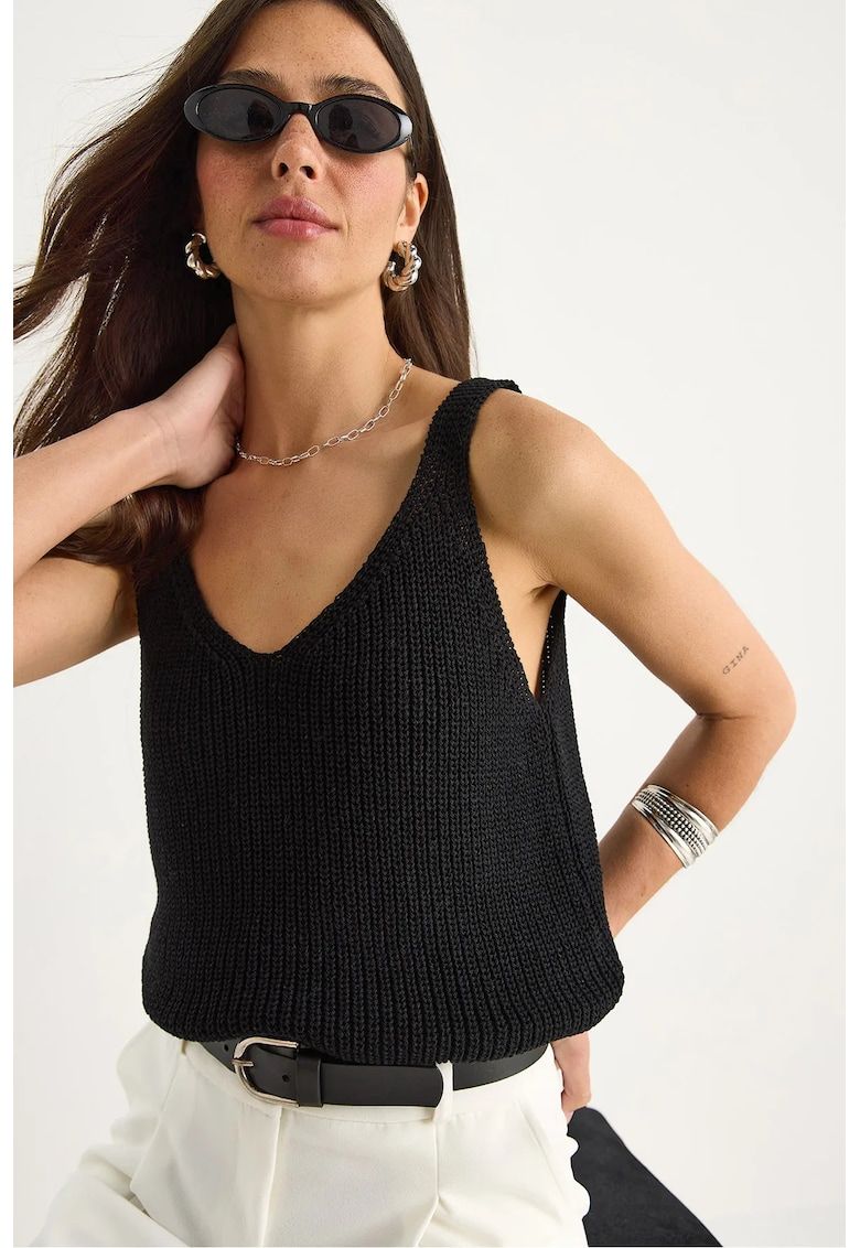 compleu dama - top scurt cu fermoar si pantaloni - negru - tricot