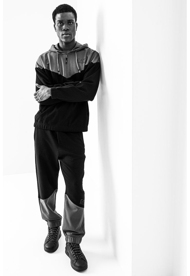 Caracteristici Culoare: negru - gri inchis Imprimeu: uni Material: poliester - bumbac Croiala: regular fit Lungime maneca: maneca lunga Lungime pantaloni: lungi Detalii: snur pentru ajustare in talie Sistem inchidere: fermoar Compozitie Exterior: 85% bumbac - 15% poliester Info model Modelul poarta un produs de marimea M. Marimi model: 184 cm inaltime - 95 cm bust - 77 cm talie - 106 cm sold