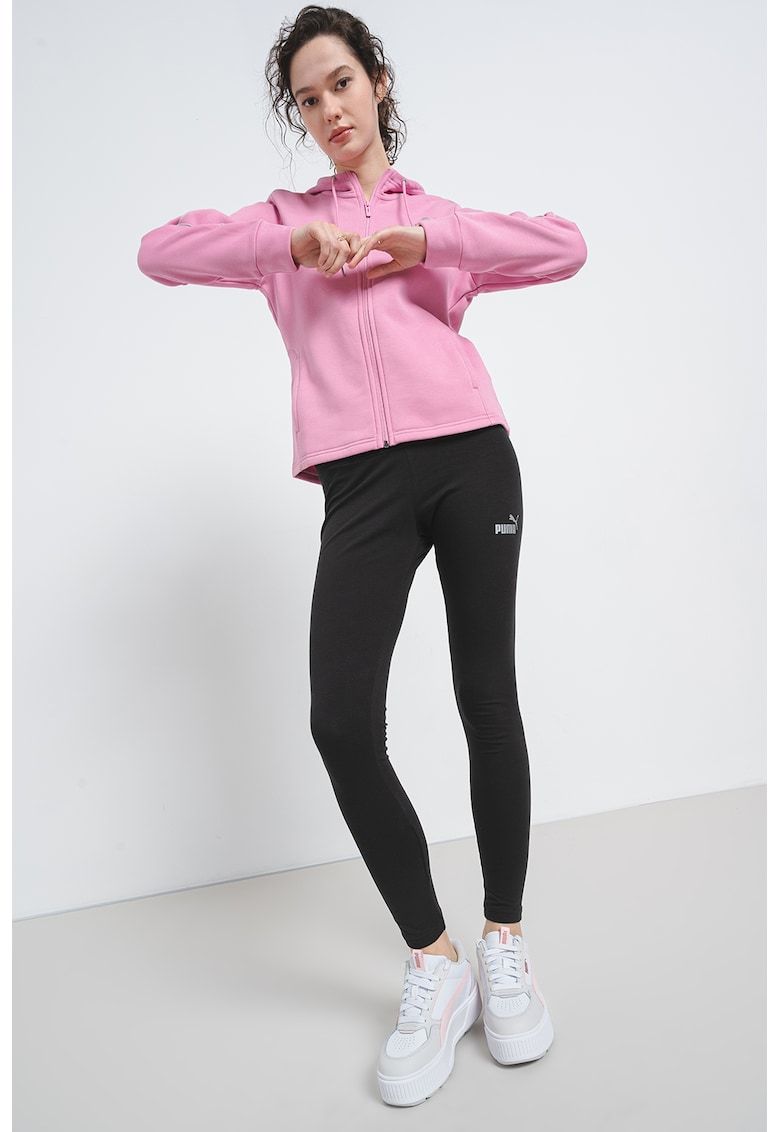 Caracteristici Culoare: negru - roz Imprimeu: logo Material: poliester - bumbac Croiala: regular fit - slim fit Lungime maneca: maneca lunga Buzunare: 2 oblice Talie: medie Lungime pantaloni: lungi Sistem inchidere: fermoar Continut pachet: hanorac cu fermoar si colanti Compozitie Exterior: hanorac: 100% bumbac - colanti: 66% bumbac - 34% poliester Info model Modelul poarta un produs de marimea S. Marimi model: 177 cm inaltime - 85 cm bust - 62 cm talie - 92 cm sold