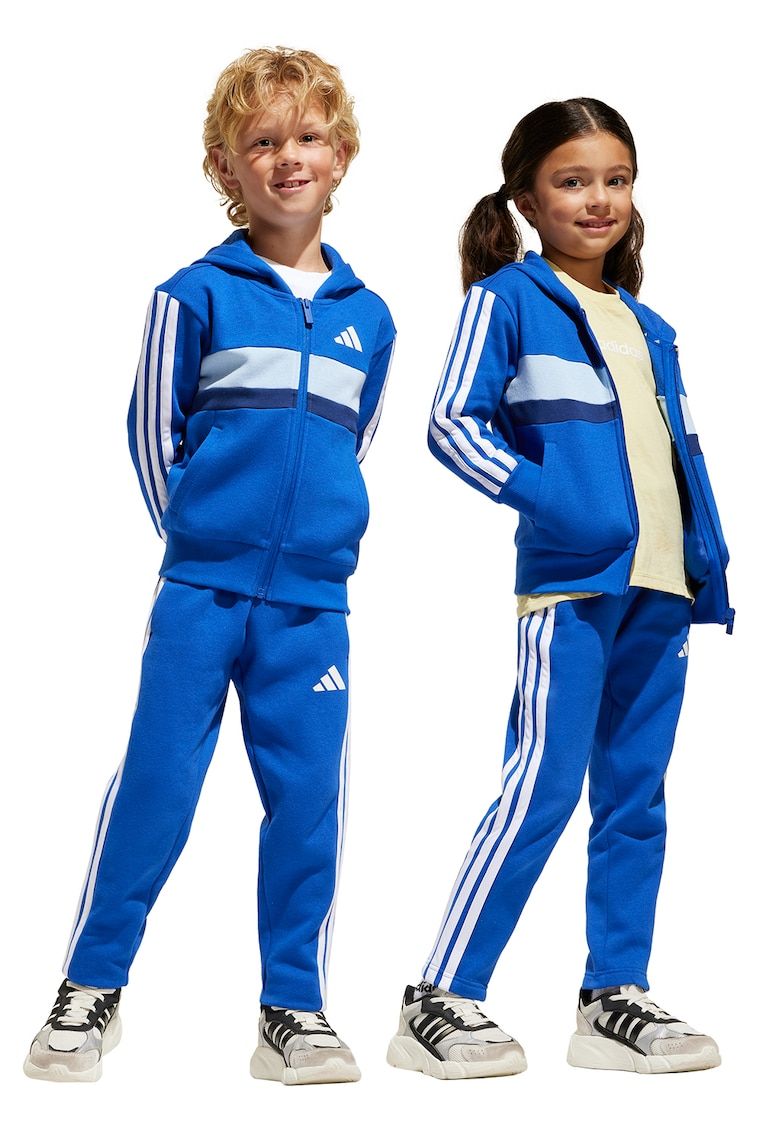 Caracteristici Continut pachet: o jacheta sport cu fermoar si o pereche de pantaloni sport Culoare: albastru royal - alb optic Imprimeu: logo Croiala: regular fit Material: poliester - bumbac Lungime maneca: maneca lunga Lungime pantaloni: lungi Sistem inchidere: fermoar Detalii: snur pentru ajsutare Compozitie Exterior: 70% bumbac - 30% poliester reciclat