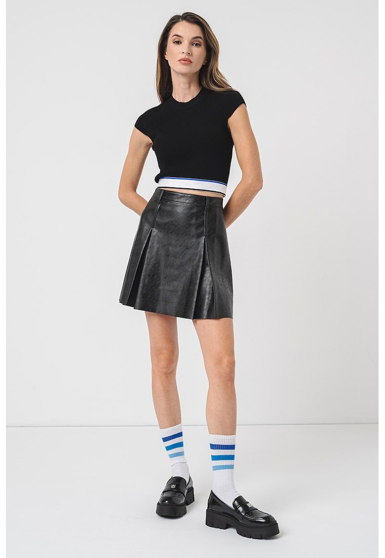 Caracteristici Culoare: negru Imprimeu: uni Material: viscoza Croiala: crop Model: decolteu la baza gatului Lungime maneca: maneca scurta Compozitie Exterior: 65% viscoza - 35% poliamida Info model Modelul poarta un produs de marimea S. Marimi model: 174 cm inaltime - 78 cm bust - 59 cm talie - 85 cm sold