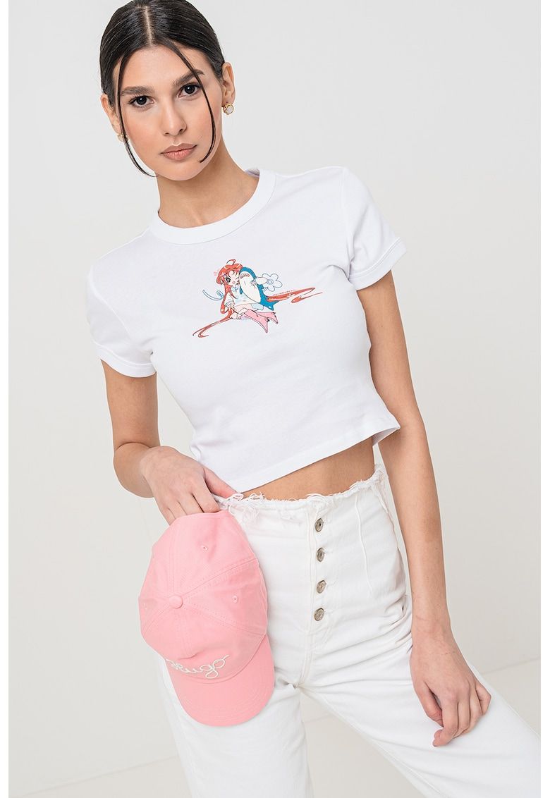Caracteristici Culoare: alb Imprimeu: grafic Material: bumbac Croiala: crop Model: decolteu la baza gatului Lungime maneca: maneca scurta Compozitie Exterior: 100% bumbac Info model Modelul poarta un produs de marimea S. Marimi model: 181 cm inaltime - 83 cm bust - 59 cm talie - 91 cm sold