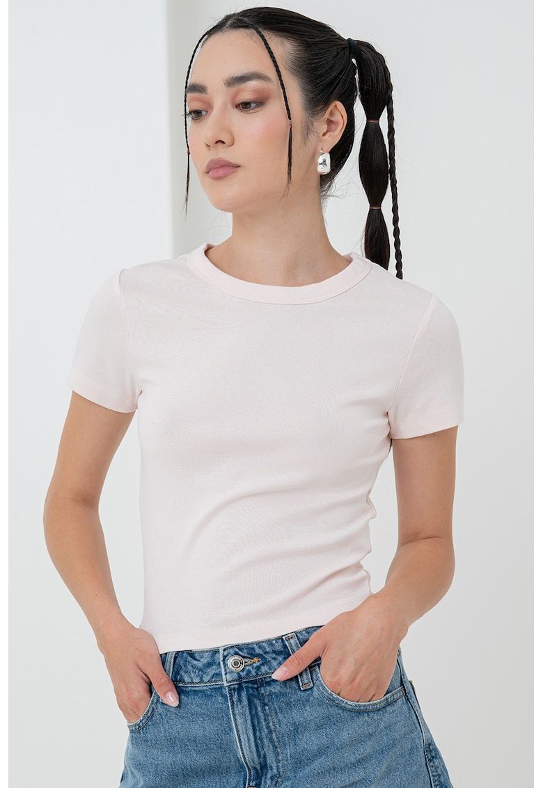 Caracteristici Culoare: roz pastel Imprimeu: uni Material: bumbac organic Croiala: slim fit Model: rotund Lungime maneca: maneca scurta Compozitie Exterior: 94% bumbac organic - 6% elastan Info model Modelul poarta un produs de marimea S. Marimi model: 170 cm inaltime - 78 cm bust - 60 cm talie - 99 cm sold