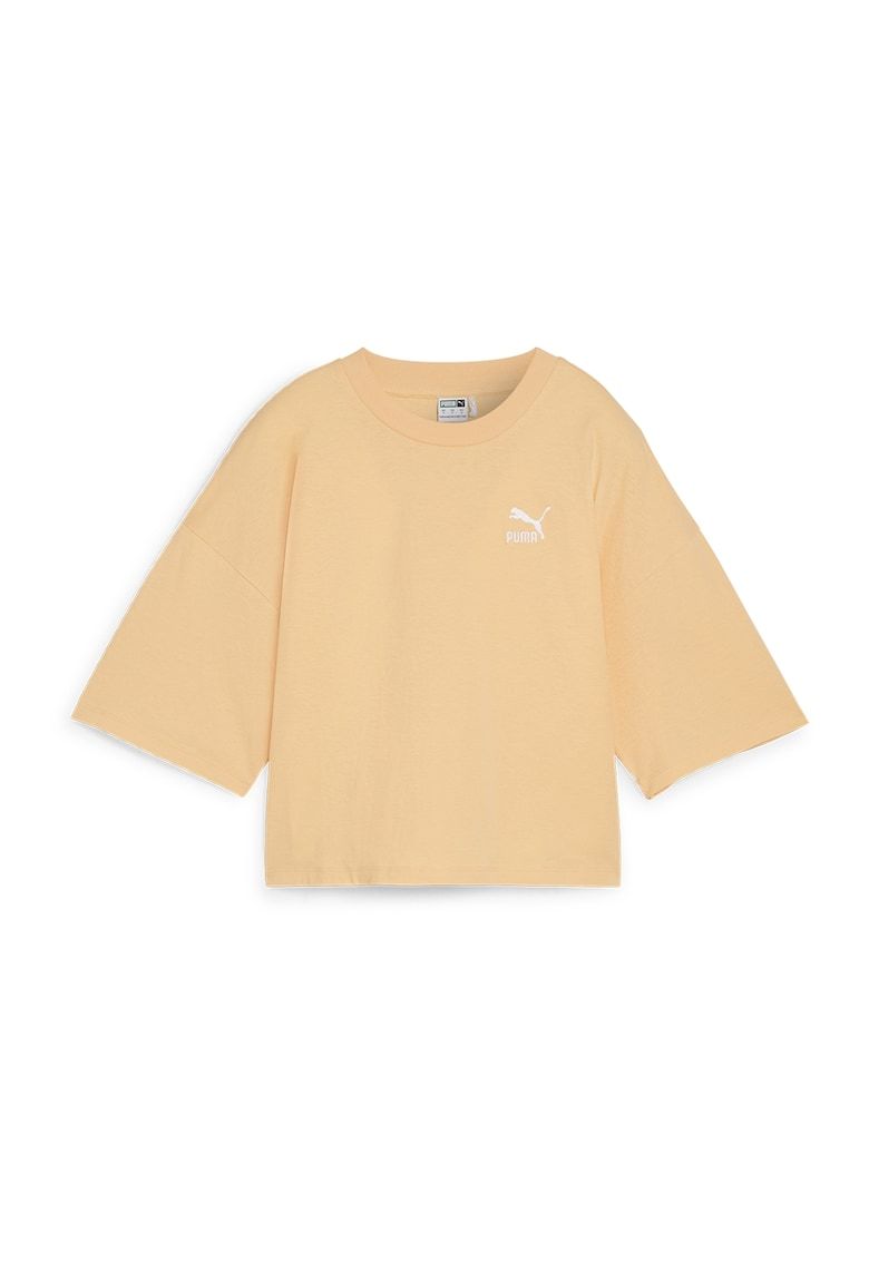 Caracteristici Culoare: piersica Imprimeu: uni Material: bumbac - sustenabil Croiala: crop Model: decolteu la baza gatului Maneci: maneci cazute Lungime maneca: maneca medie Compozitie Exterior: 75% bumbac - 25% bumbac reciclat