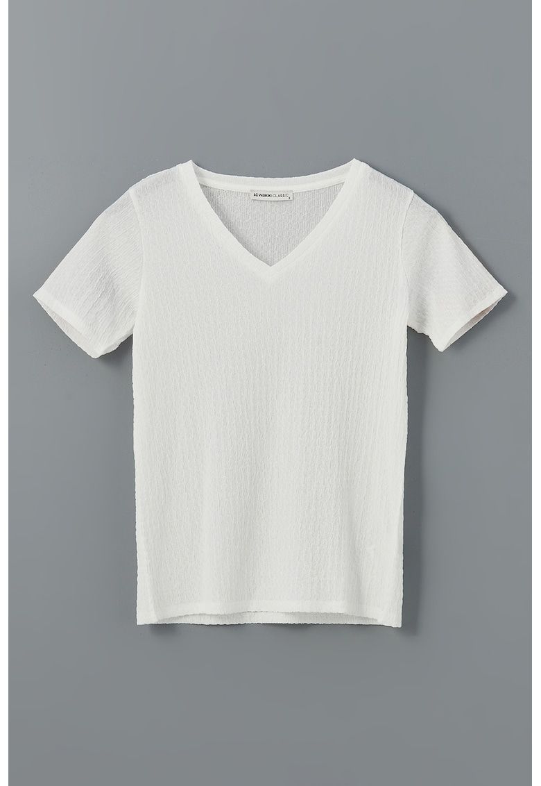 Caracteristici Culoare: alb Imprimeu: uni Material: sintetic Croiala: regular fit Model: in v Lungime maneca: maneca scurta Compozitie Exterior: 99% poliester - 1% elastan