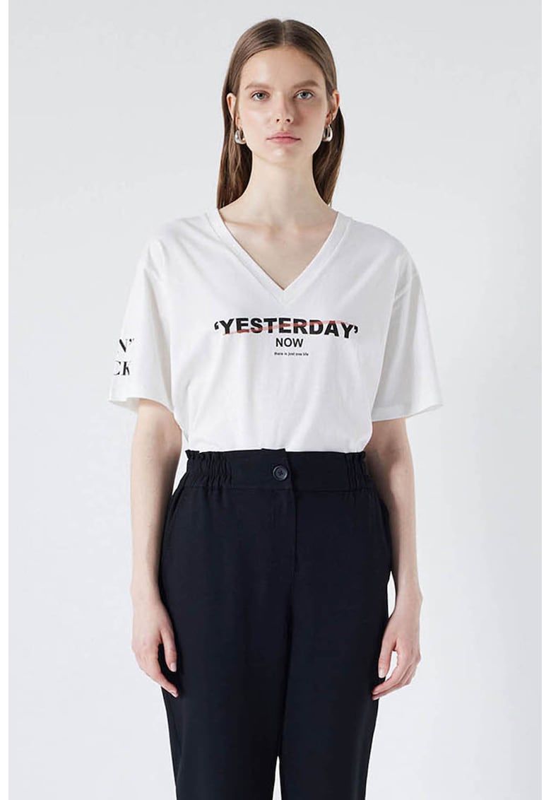 tricou cu decolteu in v si model text