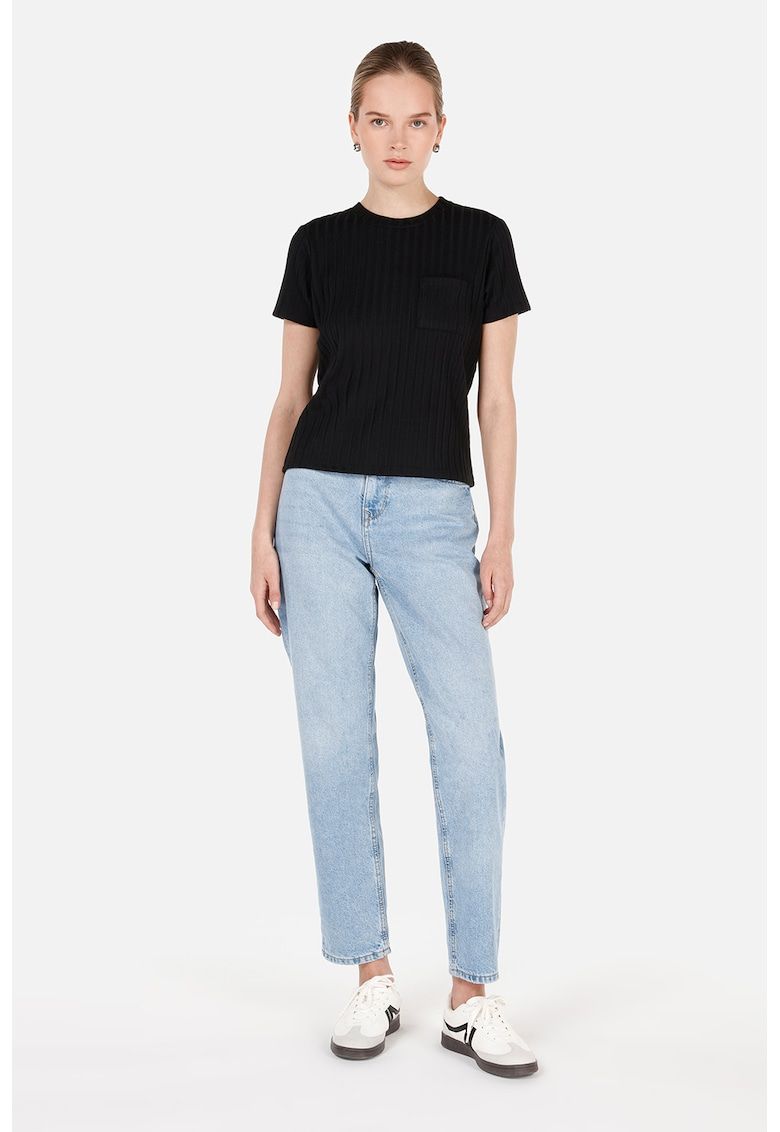 Caracteristici Culoare: negru Imprimeu: uni Material: poliester Croiala: regular fit Model: decolteu la baza gatului Lungime maneca: maneca scurta Detalii: aplicatie pe piept Compozitie Exterior: 95% poliester - 5% elastan