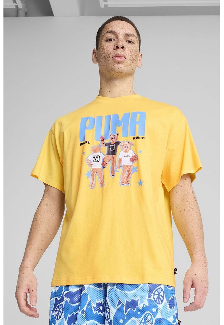 Caracteristici Culoare: galben sofran - albastru deschis Imprimeu: logo - grafic Material: bumbac Croiala: regular fit Model: decolteu la baza gatului Lungime maneca: maneca scurta Compozitie Exterior: 70% bumbac - 30% bumbac reciclat