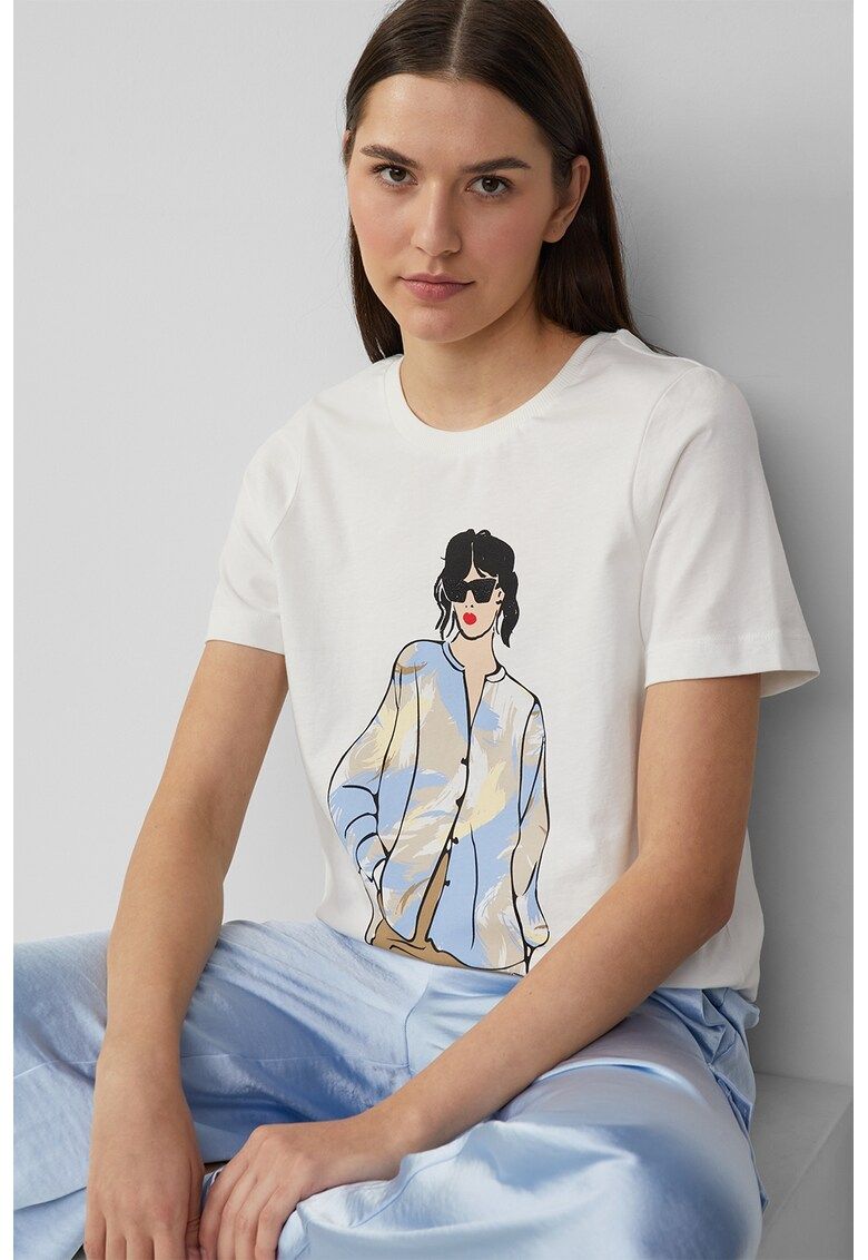 tricou cu decolteu la baza gatului si imprimeu grafic