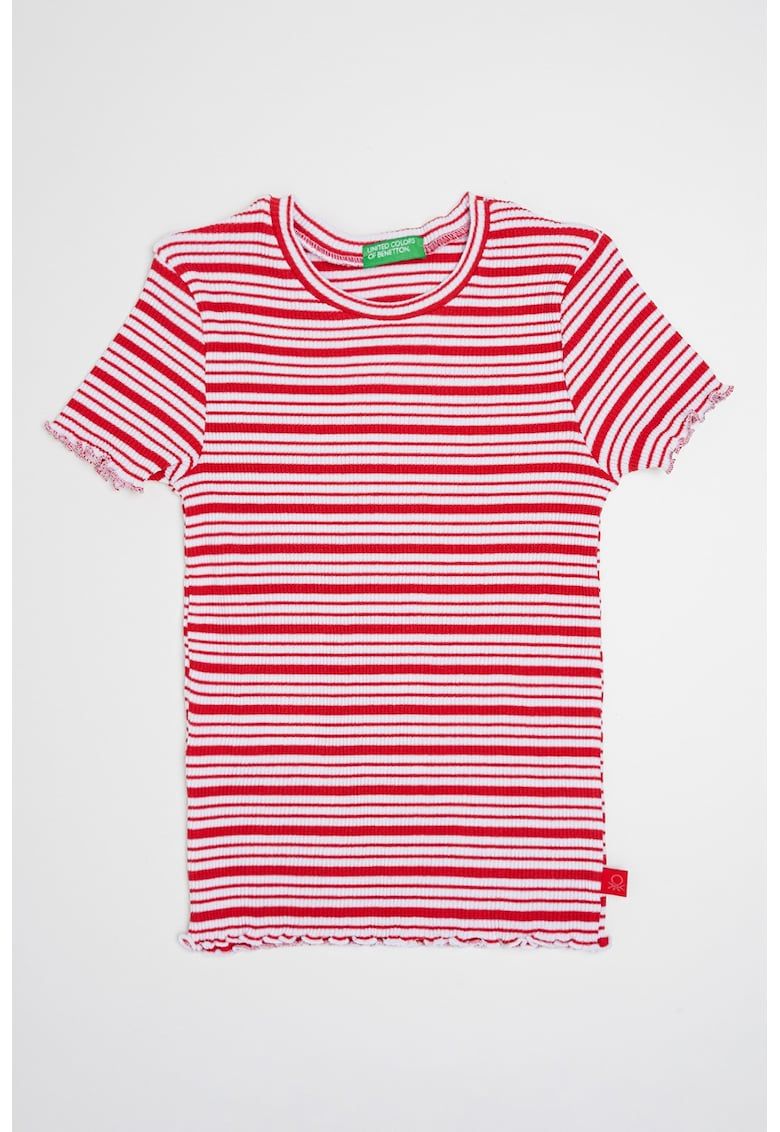 Caracteristici Culoare: rosu - alb optic Material: bumbac Imprimeu: dungi Croiala: regular fit Decolteu: la baza gatului Lungime maneca: maneca scurta Compozitie Exterior: 100% bumbac