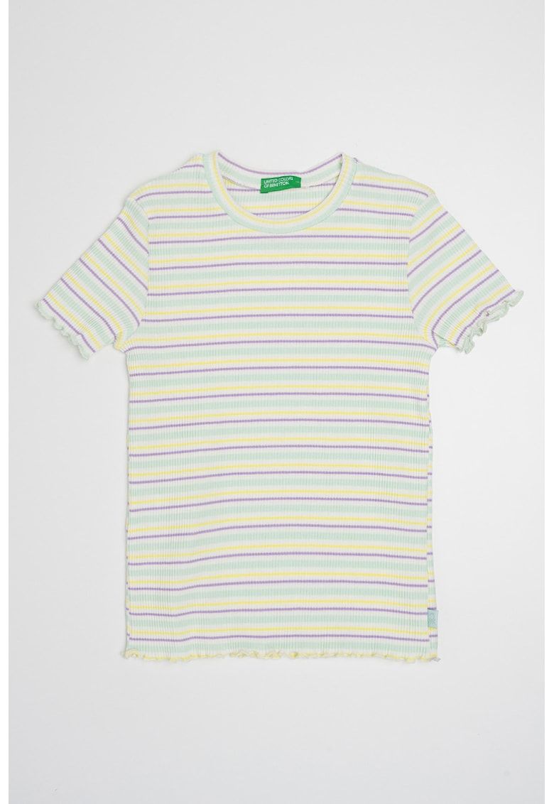 Caracteristici Culoare: galben - alb murdar Material: bumbac Imprimeu: dungi Croiala: regular fit Decolteu: la baza gatului Lungime maneca: maneca scurta Compozitie Exterior: 100% bumbac