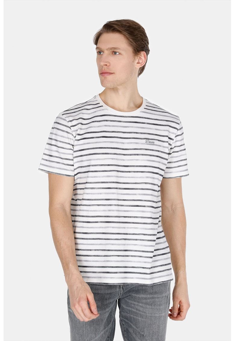 Caracteristici Culoare: alb murdar - gri inchis Imprimeu: dungi Material: bumbac Croiala: regular fit Model: decolteu la baza gatului Lungime maneca: maneca scurta Compozitie Exterior: 100%bumbac