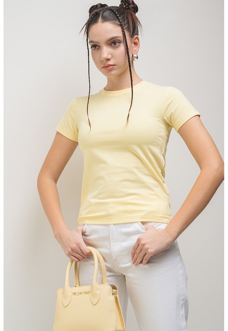 Caracteristici Culoare: galben Imprimeu: logo Material: bumbac - elastan Croiala: slim fit Model: decolteu la baza gatului Lungime maneca: maneca scurta Compozitie Exterior: 95% bumbac - 5% elastan Info model Modelul poarta un produs de marimea S. Marimi model: 175 cm inaltime - 81 cm bust - 60 cm talie - 90 cm sold