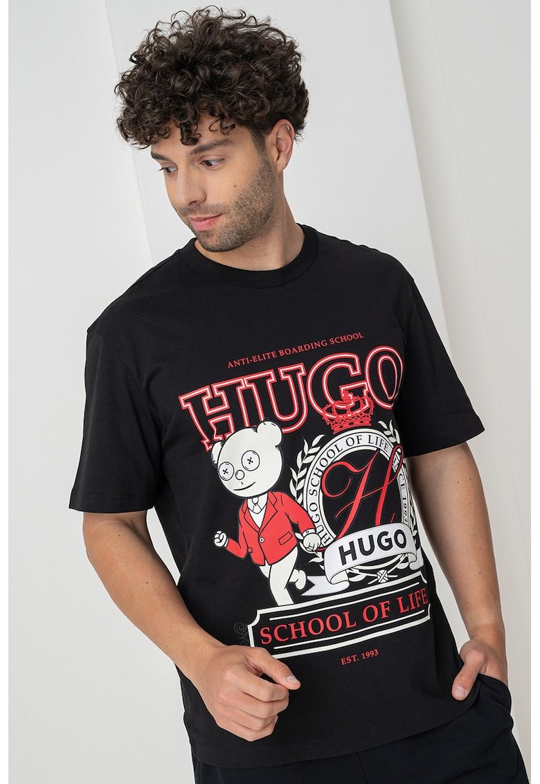 tricou cu imprimeu logo si decolteu la baza gatului