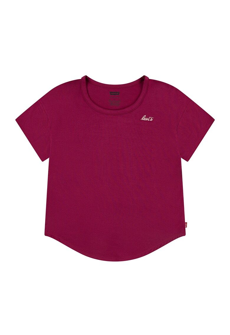 Caracteristici Culoare: roz zmeuriu Material: viscoza Imprimeu: uni - logo Croiala: evazat Decolteu: la baza gatului Lungime maneca: maneca scurta Compozitie Exterior: 95% viscoza - 5% elastan