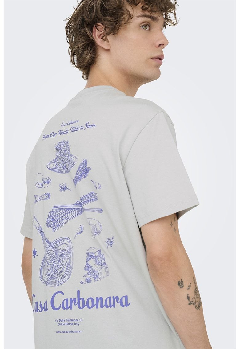 Caracteristici Culoare: gri deschis - ametist Imprimeu: text - grafic Material: bumbac organic Croiala: regular fit Model: rotund Lungime maneca: maneca scurta Compozitie Exterior: 100% bumbac organic