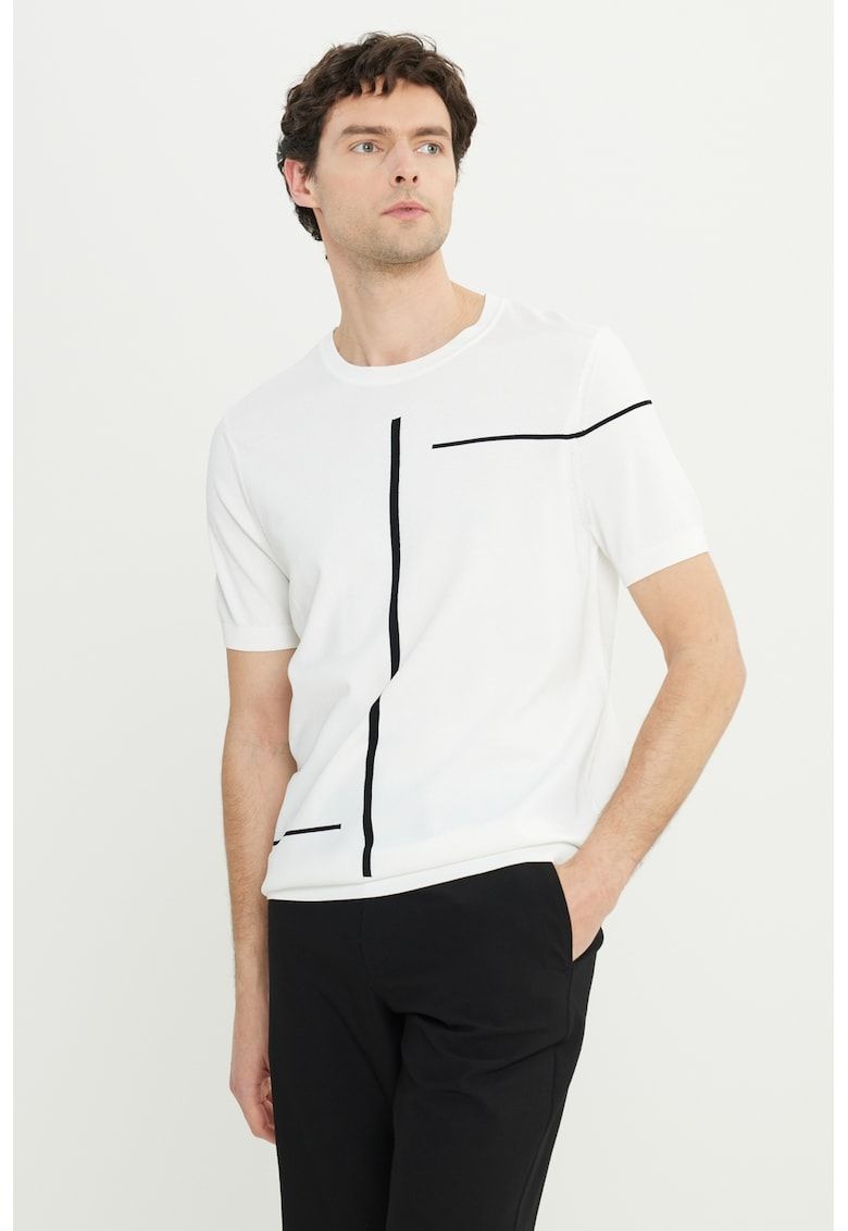 Caracteristici Culoare: alb - negru Imprimeu: uni Material: viscoza - poliamida Croiala: lejer Model: decolteu la baza gatului Lungime maneca: maneca scurta Compozitie Exterior: 65% viscoza - 35% poliamida
