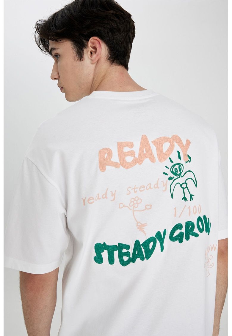 Caracteristici Culoare: alb Imprimeu: text Material: bumbac Croiala: lejer Model: decolteu la baza gatului Lungime maneca: maneca scurta Compozitie Exterior: 100% bumbac